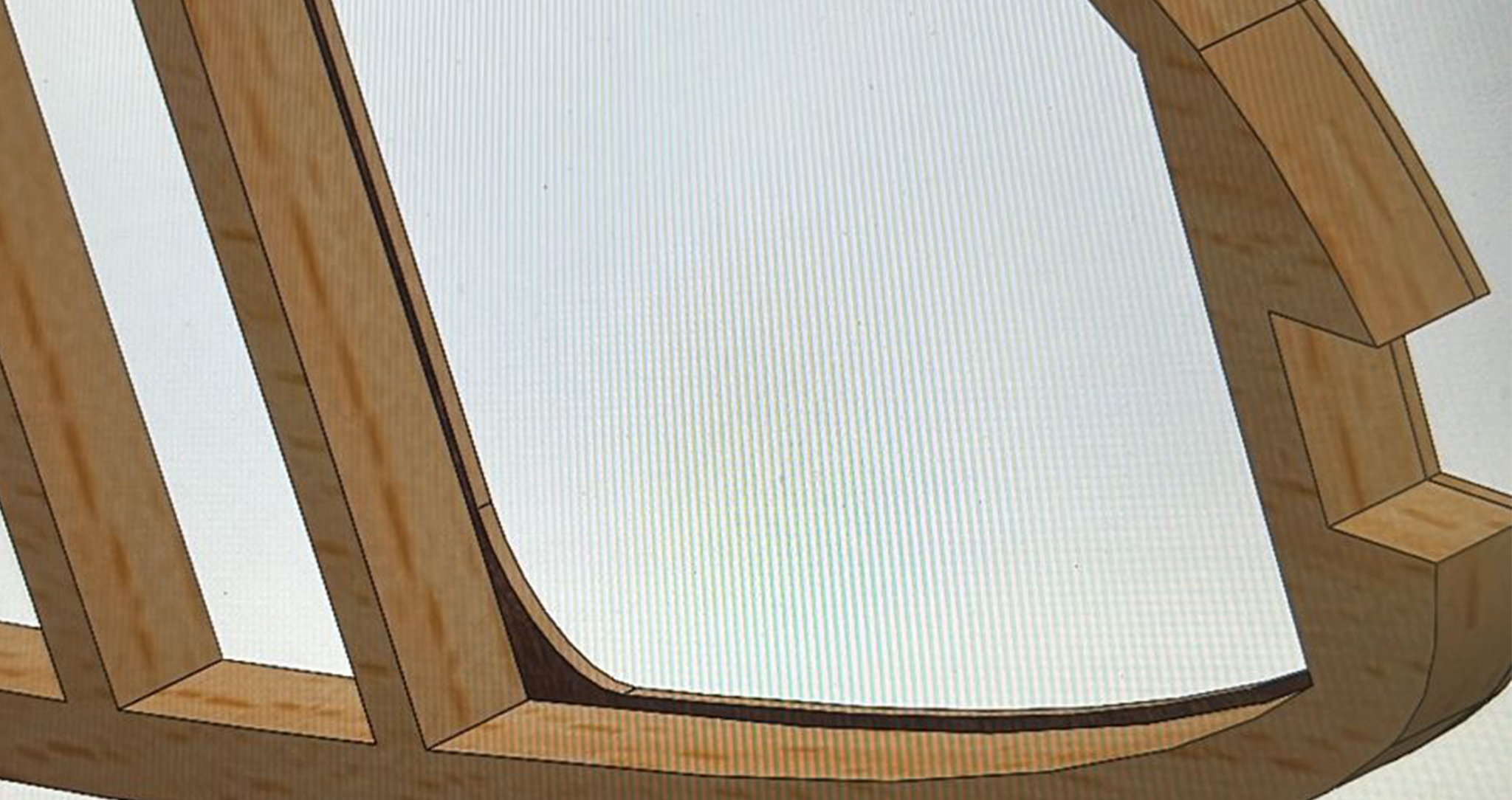 No vídeo, é possível observar uma das nervuras da asa do nosso biplano. Após ser ajustada no computador, ela servirá como modelo para a confecção de uma nova peça.